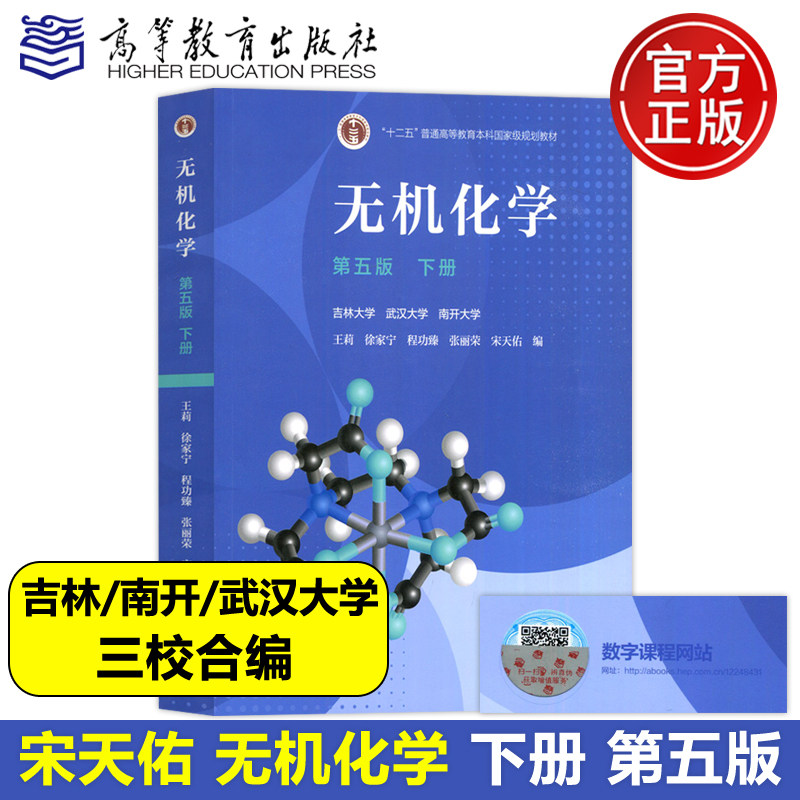 《无机化学》(第五版)由宋天佑主编,分上下两册,由高等教育出版社出版,是面向21世纪课程教材及化学类专业经典教材。本书在第四版基础上全面修订,内容系统、结构清晰,涵盖化学原理、元素化学及前沿发展,注重理论与实际结合。配套《例题与习题》及《习题解答》,强化知识理解与应用能力,特别适合化学类专业本科生学习及考研复习使用。作为全国众多高校化学考研指定参考书,该书体系完整、例题丰富、习题典型,深受广大师生信赖,是无机化学学习与备考的重要工具书。