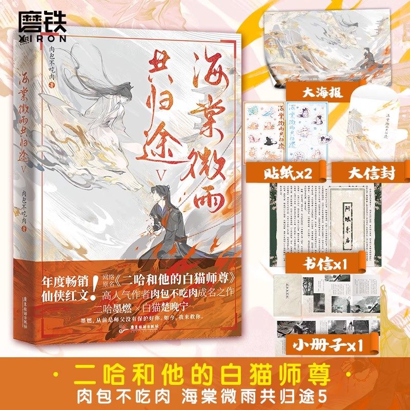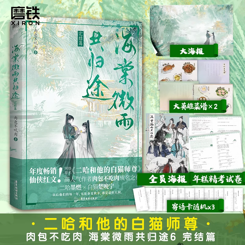 《海棠微雨共归途》是肉包不吃肉创作的古风言情小说,共6册完结篇,由磨铁图书出版。作品以细腻笔触描绘了一段跨越生死、纠葛千年的深情羁绊,主角命运起伏跌宕,情感真挚动人。故事融合仙侠、虐恋与救赎元素,既有二哈师尊的傲娇深情,也有白猫徒弟的执着守护,剧情层层递进,结局圆满。作为《二哈和他的白猫师尊》的姐妹篇,本书延续了作者一贯的唯美文风与强烈情感张力,深受读者喜爱,长期位居青春文学畅销榜。实体书装帧精美,是言情爱好者不可错过的典藏之作。