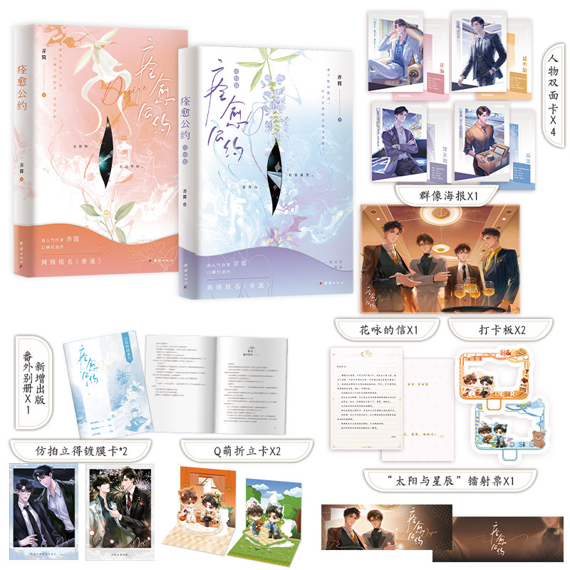 《捡漏亲签痊愈公约》是弄简创作的现代商战双男主耽美小说,全2册装+番外,原名《垂涎》。作品以紧凑剧情与细腻情感交织,讲述两位商界精英在权力博弈与命运纠葛中从对立到相惜的动人故事。小说融合职场权谋、情感张力与人物成长,被誉为耽美畅销佳作。欣梦享图书正版发行,WE-99.6版本含作者亲签,更具收藏价值。装帧精美,纸质优良,是书迷不可错过的实体珍藏。作品在保留原作精髓基础上优化细节,番外篇补充主角情感线,令故事更圆满。适合喜爱现代商战、强强设定与深情CP的读者。