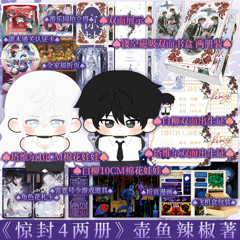 《我在无限游戏里封神》(网络原名)是作者壶鱼辣椒创作的爆款无限流小说,实体书由新视角图书正版推出,青春畅销,广受读者喜爱。本次特典+印特娃娃版“惊封4”为粉丝精心打造,附赠精美特典及周边,其中“白柳”与“黑桃”主题印特娃娃尤为吸睛,还原角色神韵,极具收藏价值。故事以新颖视角展开,融合悬疑、冒险与人性探讨,主角在生死游戏中逆袭封神,节奏紧凑,情感张力十足。该版本不仅内容完整,装帧精美,更通过特典内容深化角色魅力,是书迷不可错过的珍藏之作。