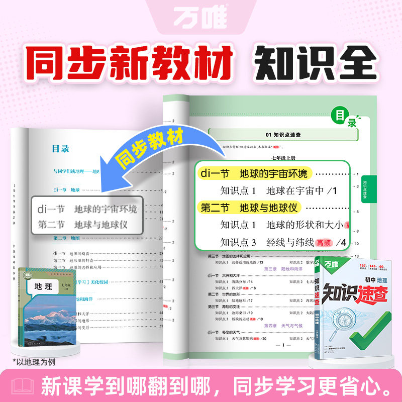 天猫2026万唯中考知识速查初中小四门知识点快速定位速查必背清单人教版初一初二初三道法历史生物地理基础知识考点速记手册万维教育书