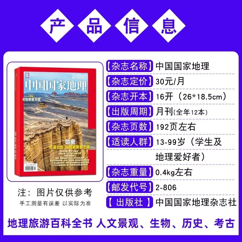 《中国国家地理》2025年1—12月全年订阅,涵盖2026年半年/全年续订选项,精选2024年“选美中国”增刊、黔东南特辑、喀什与西藏深度专辑,以及219国道公路穿越、凉山州人文生态、博物万物科普等重磅内容。杂志以权威视角、精美影像和深度解读,展现中国自然奇观与人文底蕴,融合科学考察与旅行探索,是地理爱好者、摄影师与文化旅行者的必备读物。全年12期系统呈现中国山河之美、生态之变与文明之脉,兼具收藏价值与知识深度,带领读者纵览神州大地,感知自然与人文的和谐共生。