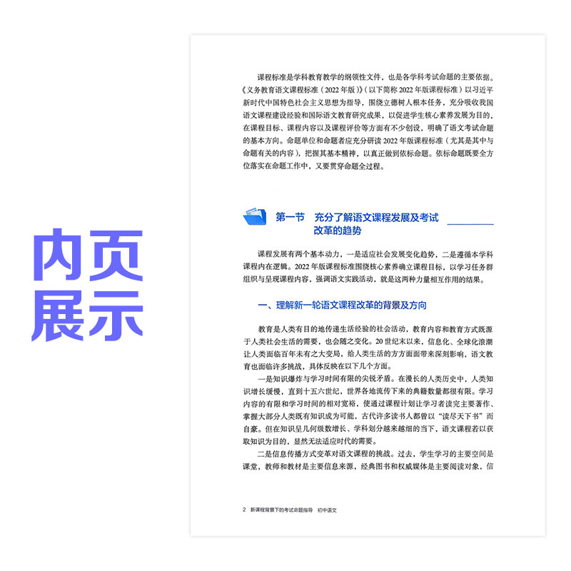 《2025初中新课程背景下的考试命题指导》由人民教育出版社编写,紧扣新课标理念,系统指导初中语文、数学、英语、物理、化学、生物、道德与法治、历史、地理等学科的考试命题工作。本书聚焦核心素养导向,强调命题的科学性、规范性与创新性,提供典型例题解析与命题策略,帮助教师准确把握学业质量标准,优化试题结构,提升评价效能。内容涵盖知识整合、情境设计、能力考查等多个维度,助力实现“教—学—评”一体化,推动初中教育高质量发展,是新课程背景下教师命题与教学的重要参考工具。