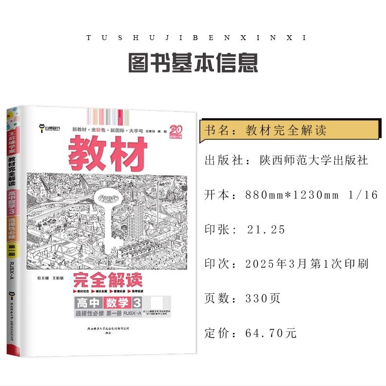 2026新版《王后雄教材完全解读》是一套专为高中学生设计的高质量同步教辅丛书,涵盖数学、物理、化学、生物、英语、语文、历史、地理、政治等全学科,包括必修一至三、选择性必修及选修内容,适配人教版教材。本书紧扣新课标与高考考纲,系统梳理知识要点,深度解析重难点,配备典型例题与分层训练,帮助学生夯实基础、提升能力。书中设置“知识精讲”“方法点拨”“易错警示”“高考链接”等栏目,注重思维引导与解题技巧培养,适合高一至高三各年级学生同步学习与复习使用,是提升学科素养、备战高考的得力助手。