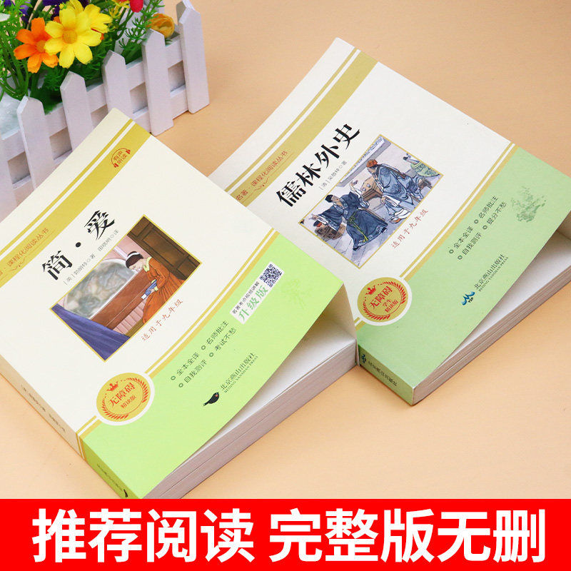 天猫简爱和儒林外史原著正版书九年级必读下册读本人民教育出版社初三中考生同步初中课外阅读书籍无删减完整版经典名著导读文学人教版