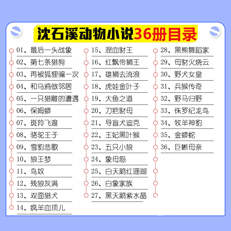 天猫沈石溪动物小说全集36册 全套 狼王梦斑羚飞渡第七条猎狗最后一头战象四五六年级儿童文学小说 10-12-15周岁小学生课外阅读书籍