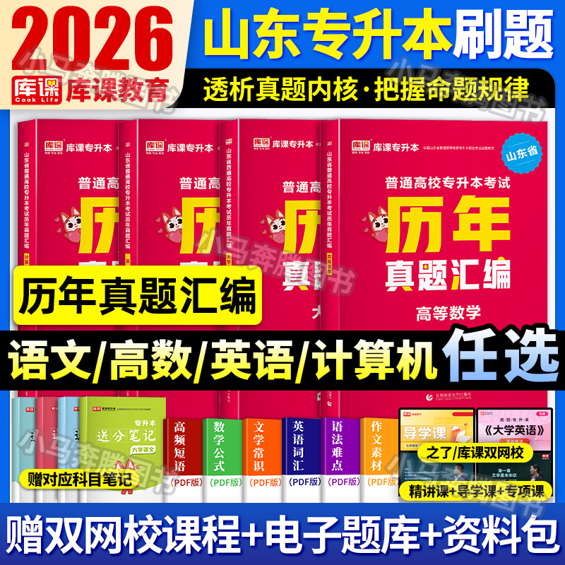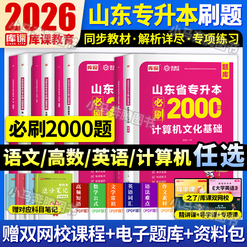 库课2026年山东专升本考试教材《必刷题2000题》及历年真题试卷,是专为山东省专升本考生精心打造的权威复习资料。涵盖高等数学(高数一、二、三)、大学语文、英语、计算机等核心科目,内容紧扣最新考试大纲,题型全面,难度适中。书中精选历年真题,辅以高质量模拟题,帮助考生熟悉命题规律,提升应试能力。配合智博教育教研团队深度解析,强化重点难点,实现高效备考。无论是基础巩固还是冲刺提分,本套资料均为山东专升本学子的理想选择,助力考生圆梦本科。