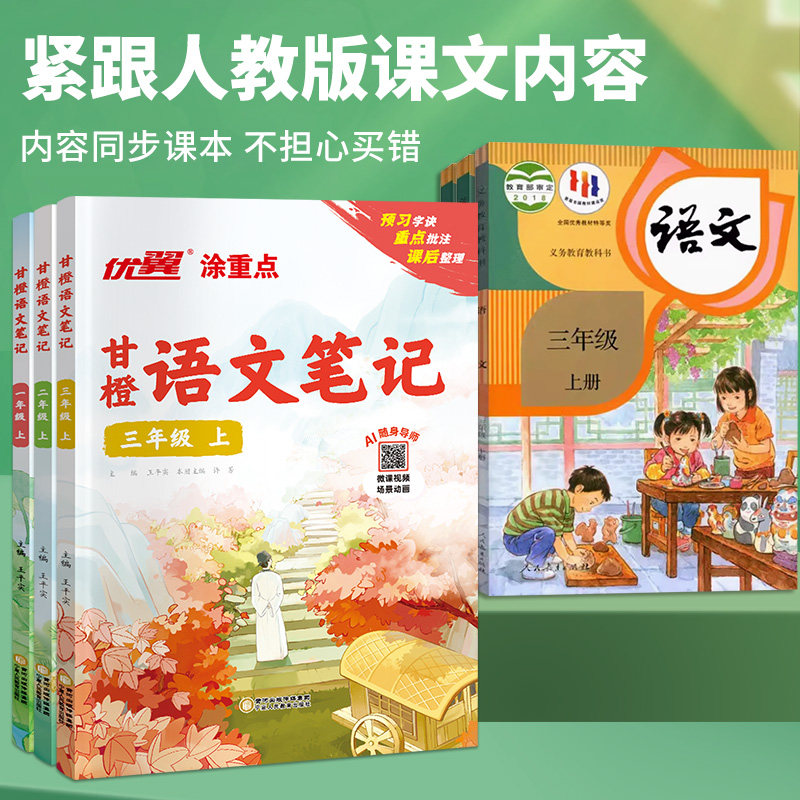 天猫2025秋甘橙语文笔记1-6年级上下册人教课堂学霸笔记四年级上册同步教材随堂预习重点知识讲解一二三五六年级课本讲解资料书234