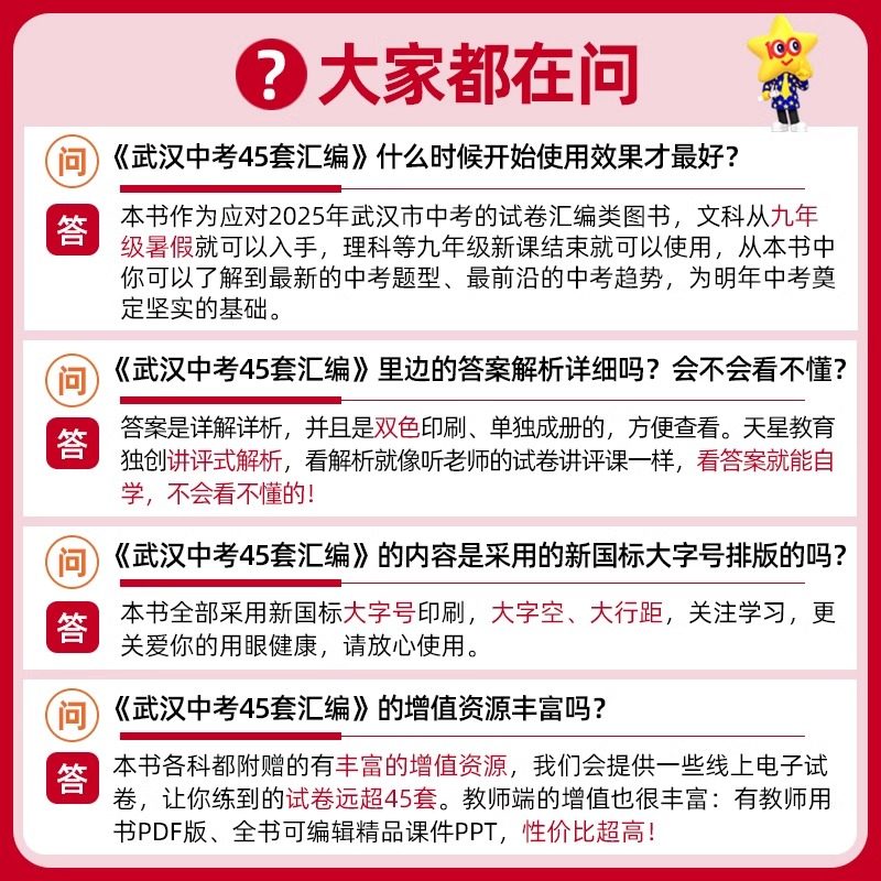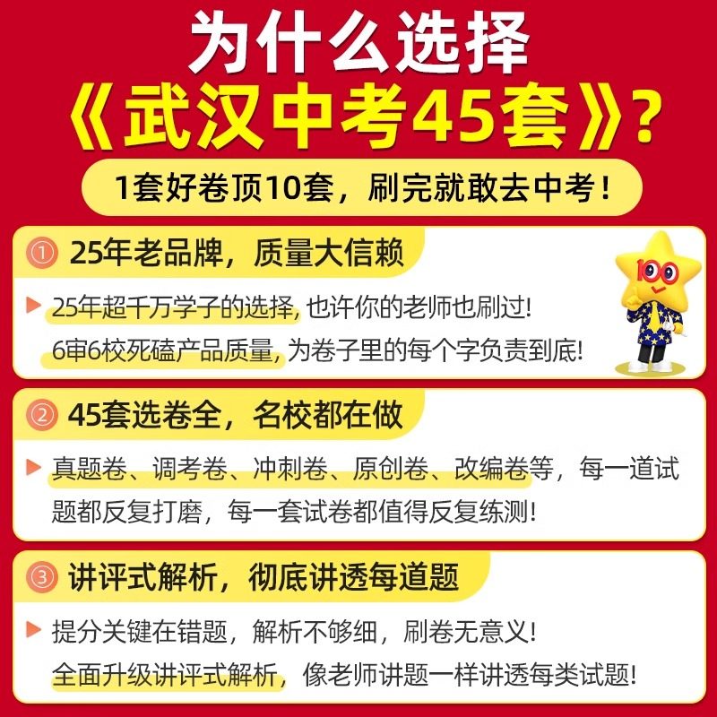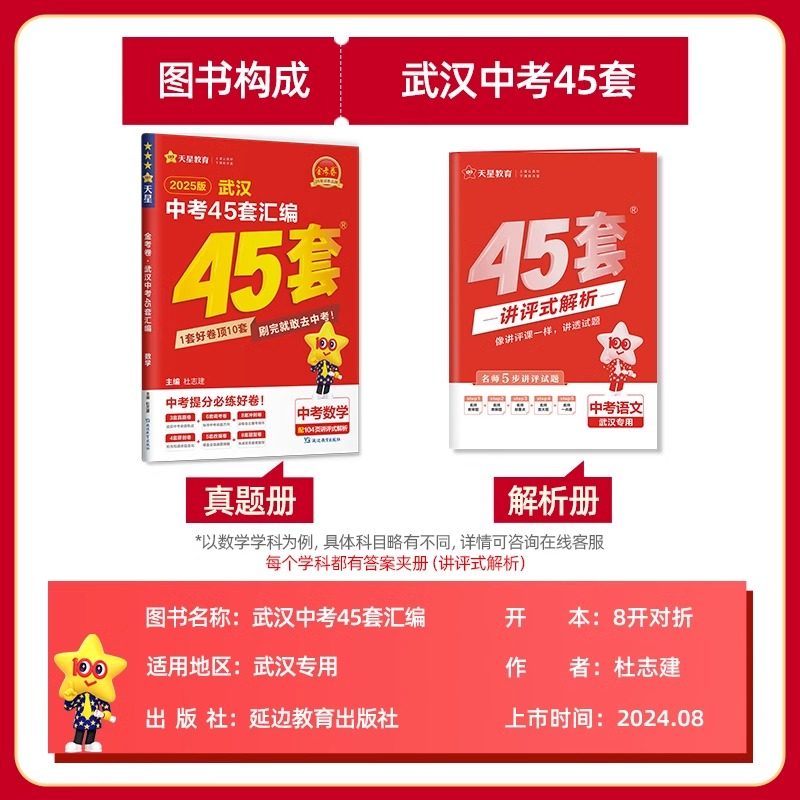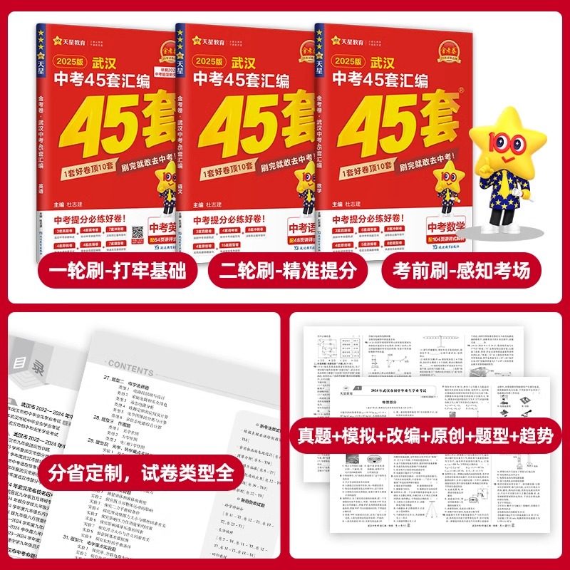 【武汉专版】2026金考卷武汉中考45套汇编,专为湖北武汉初三学子量身打造,全面覆盖语文、数学、英语、物理、化学、道法、历史七大学科。精选元调、四调、模拟卷、信息卷及中考押题卷,整合近五年武汉中考历年真题,紧扣本地考纲与命题趋势。试题难度贴近实战,解析详尽精准,助力考生系统复习、查漏补缺。通过科学训练,提升应试能力,精准把握考点,冲刺理想高中。是武汉地区中考复习的权威资料,广受师生信赖,为中考成功保驾护航。