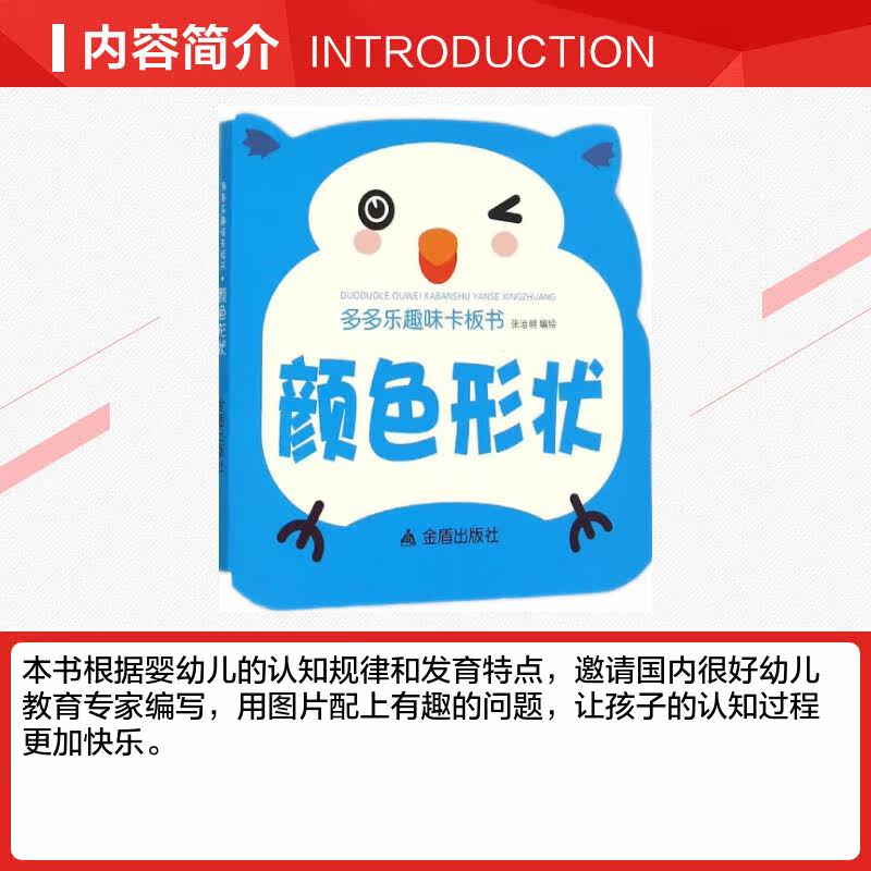 《颜色形状趣味卡板书》由张治明编绘,是一本专为幼儿设计的启蒙认知图书,精选自新华书店正版书籍,由金盾出版社出版。本书融合颜色与形状两大基础认知主题,通过鲜明对比的黑白卡与彩色插图,帮助0-3岁宝宝视觉发育与智力启蒙。卡片式设计便于翻阅,内容生动有趣,涵盖圆形、方形、红、黄、蓝等基本元素,激发孩子观察力与联想力。同时兼具识字功能,图文结合,寓教于乐。无论是亲子共读还是自主探索,都能让孩子在快乐中认识世界,是家庭早期教育的理想之选。