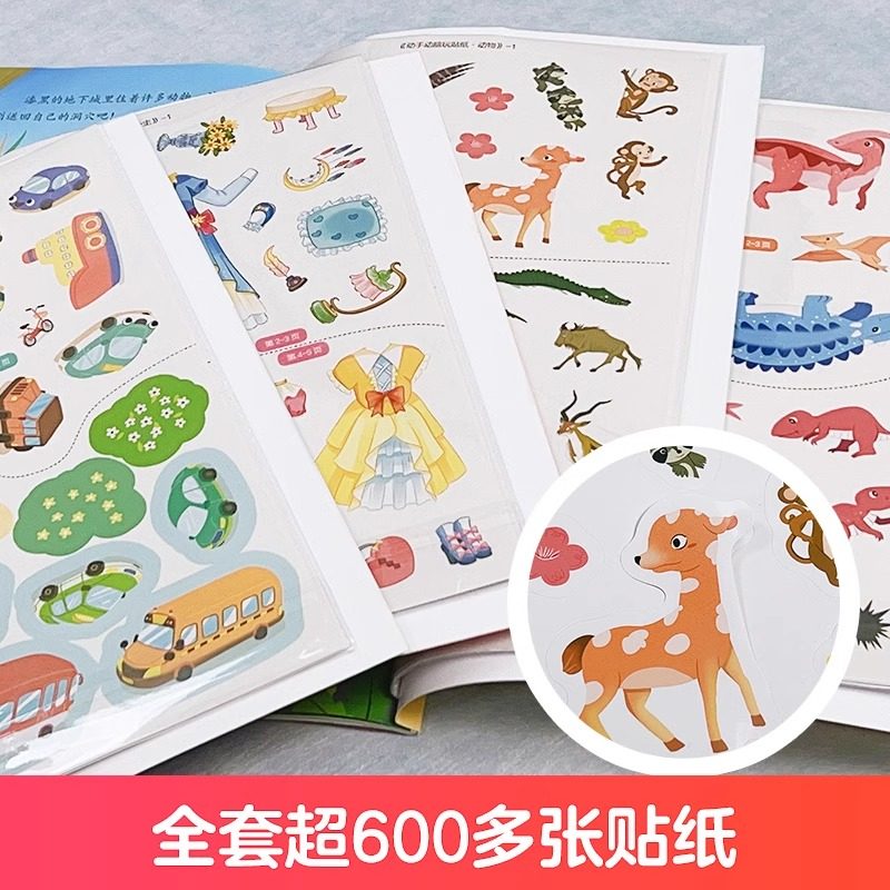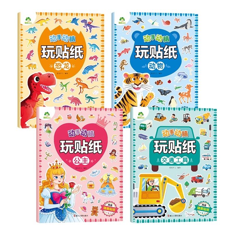天猫动手动脑玩贴纸全套4册公主动物恐龙交通工具 3-6岁 贴贴画专注力儿童全脑开发贴纸书公主换装贴纸书 爱德少儿 新华正版