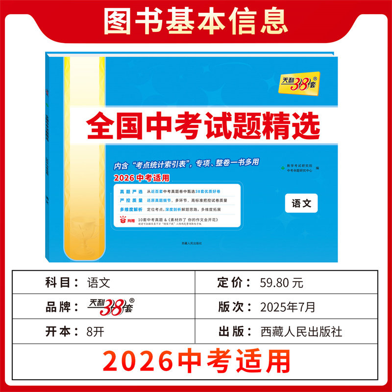 天猫当当网 天利38套2026新中考全国中考试题精选语文数学英语物理化学生物政治历史地理2025全套历年中考真题初三九年级试卷压轴题
