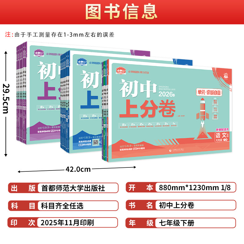 天猫2025秋/2026版初中上分卷必刷题下册上册七年级八.九.年级数学语文英语物理政治地理历史生物七上人教苏教资料试卷练习题册初一书