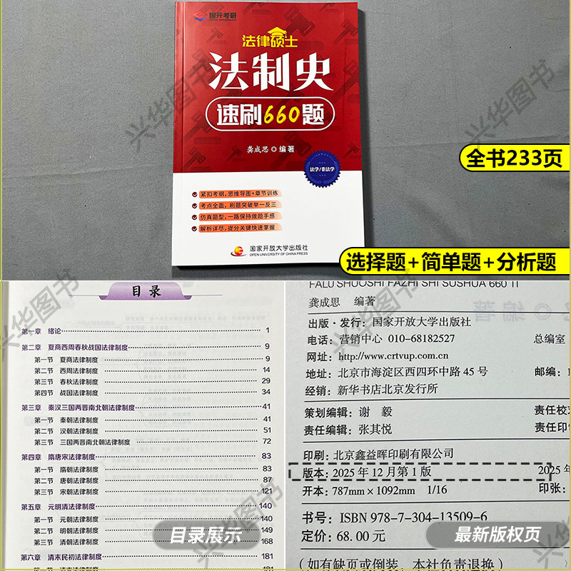 现货《2027法律硕士龚成思法制史速刷660题》专为法硕(法学/非法学)考生设计,紧扣最新考试大纲,全面覆盖法制史核心考点。本书精选660道高质量练习题,题型丰富,解析详尽,助力考生快速掌握重点、突破难点。搭配《法硕考试分析》使用,强化知识理解与记忆。附赠思维导图,系统梳理法制史发展脉络,提升复习效率。适合大三、大四及在职考生冲刺备考,是法制史科目高效提分的必备资料。龚成思老师权威编写,内容精准,逻辑清晰,助你在法硕考试中稳操胜券。