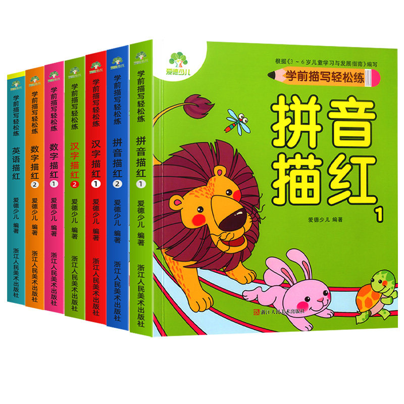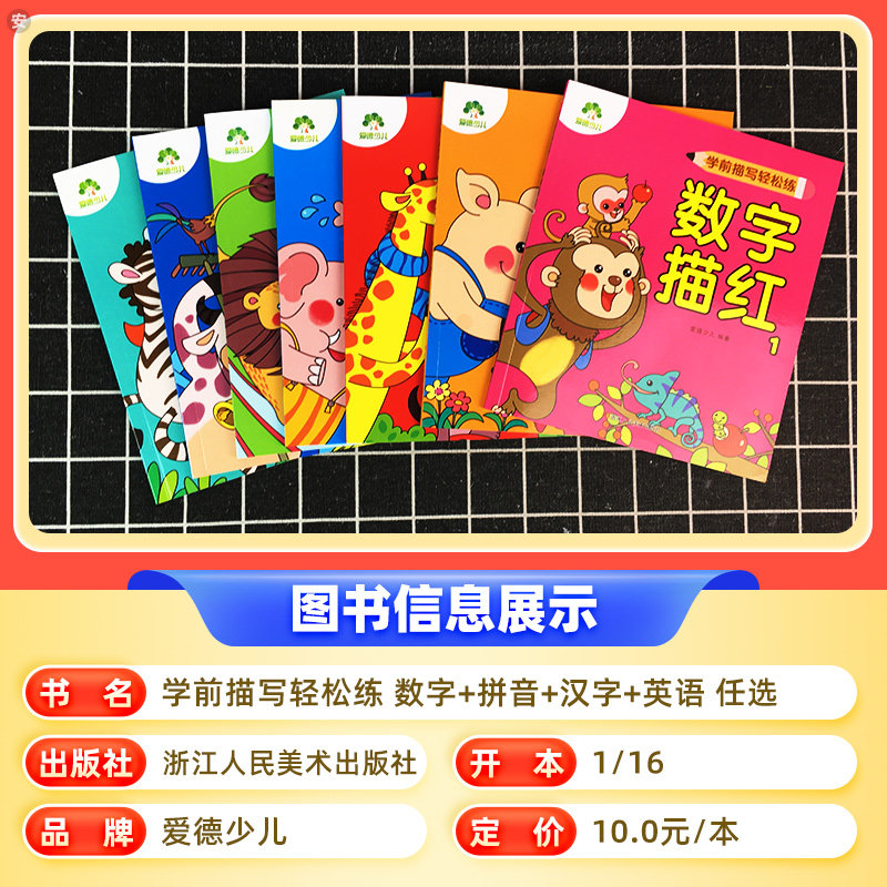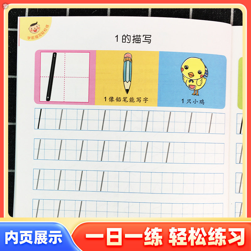 天猫爱德少儿学前描写轻松练数字拼音汉字英语描红1+2 幼小衔接一日一练入学准备数字描红1-100练习本幼儿园描红数字练字帖学前天天练