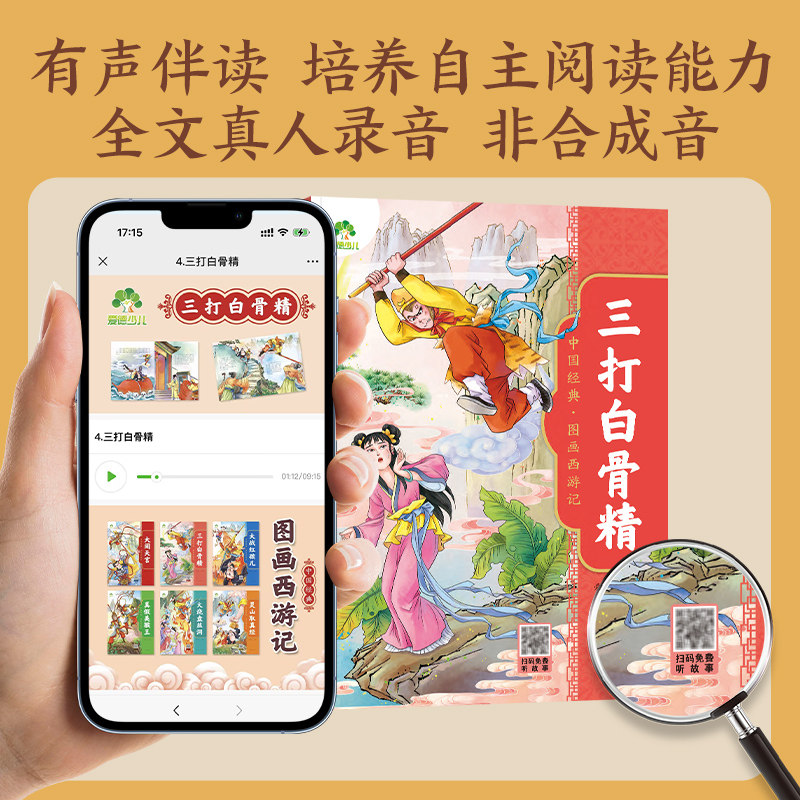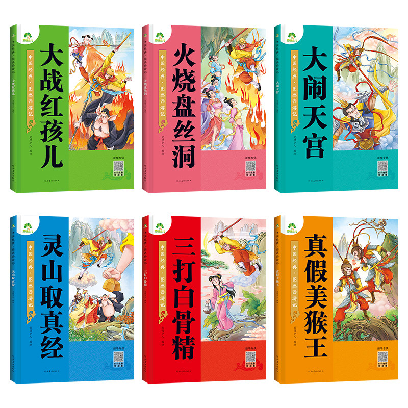 《爱德少儿中国经典图画西游记》全套6册,专为3-8岁儿童精心打造,以生动有趣的图画和简洁易懂的文字,再现《西游记》原著精彩故事。本套书采用连环画形式,融合传统经典与现代审美,让孩子在轻松阅读中感受四大名著的魅力。内容涵盖大闹天宫、三打白骨精、三借芭蕉扇等经典章节,图文并茂,激发想象力与阅读兴趣。适合幼儿园及小学低年级学生自主阅读或亲子共读。书籍印刷清晰,装帧牢固,新旧版本混发,品质有保障。是传承中华文化、培养孩子语言表达与道德认知的理想读物,让经典故事伴随孩子快乐成长。