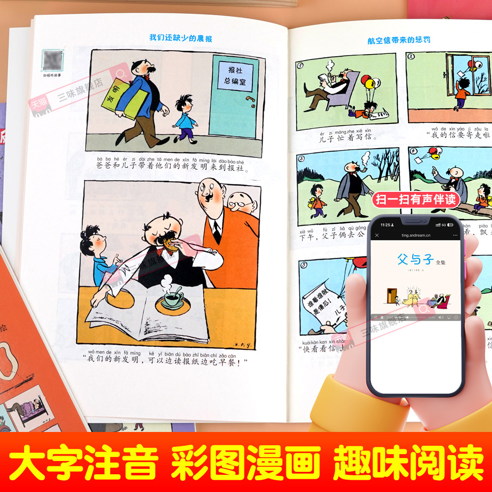 天猫全套6册正版 父与子全集彩色注音版二年级阅读课外书必读漫画书上册看图讲故事老师推荐适合一二年级看的带拼音书籍下册儿童绘本